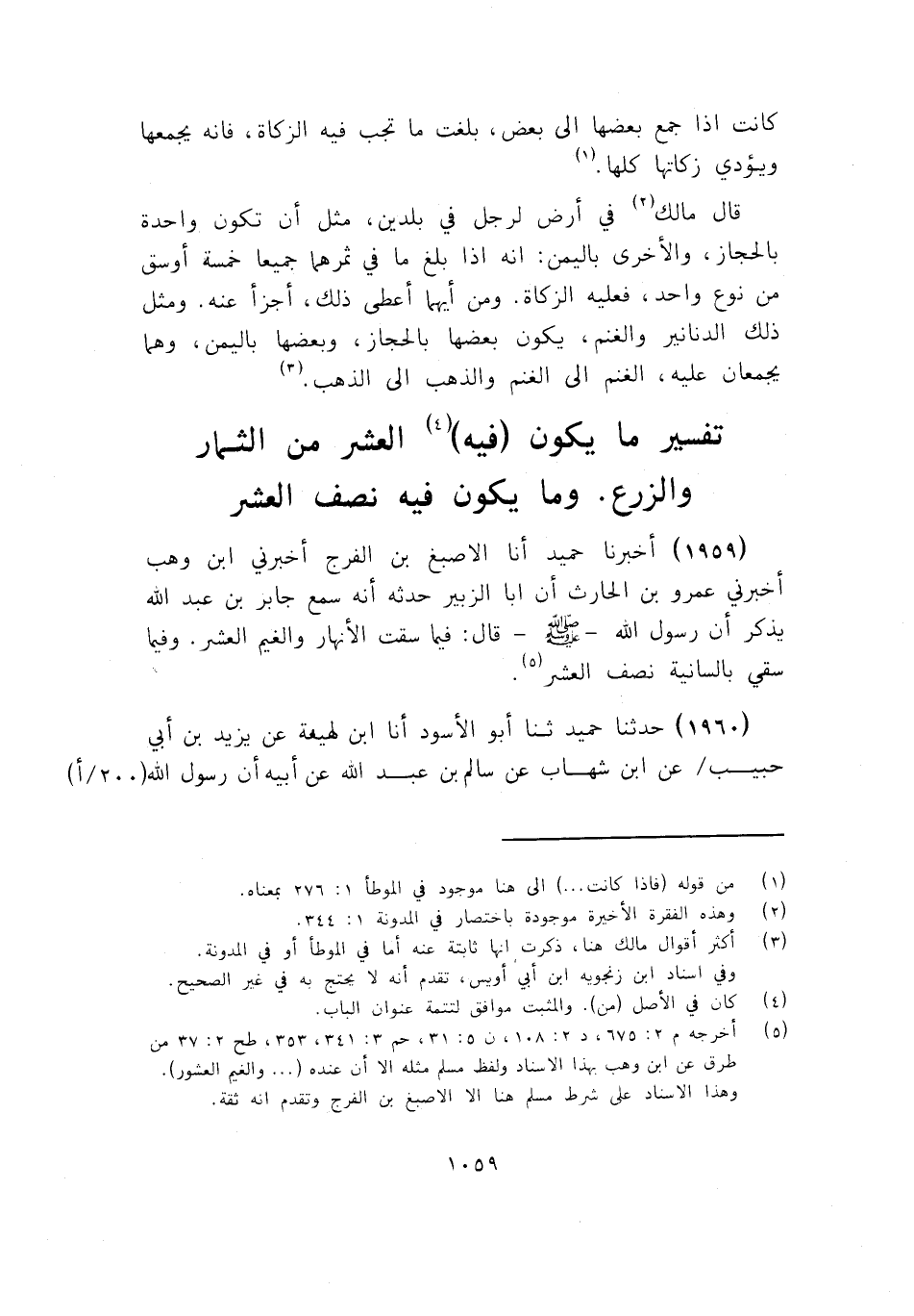 1959 - أَخْبَرَنَا حُمَيْدٌ أنا الْأَصْبَغُ بْنُ الْفَرَجِ، أَخْبَرَنِي ابْنُ وَهْبٍ، أَخْبَرَنِي عَمْرُو بْنُ الْحَارِثِ، أَنَّ أَبَا الزُّبَيْرِ، حَدَّثَهُ، أَنَّهُ، سَمِعَ جَابِرَ بْنَ عَبْدِ اللَّهِ يَذْكُرُ أَنَّ رَسُولَ اللَّهِ صَلَّى اللهُ عَلَيْهِ وَسَلَّمَ قَالَ: «§فِيمَا سَقَتِ الْأَنْهَارُ وَالْغَيْمُ الْعُشْرُ , وَفِيمَا سُقِيَ بِالسَّانِيَةِ نِصْفُ الْعُشْرِ»
