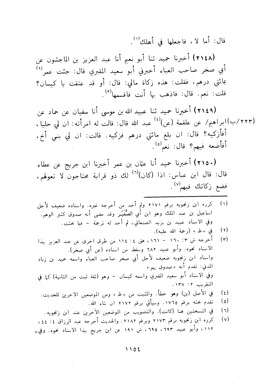 2150 - أَخْبَرَنَا حُمَيْدٌ أنا عُثْمَانُ بْنُ عُمَرَ، أَخْبَرَنَا ابْنُ جُرَيْجٍ، عَنْ عَطَاءٍ قَالَ: قَالَ ابْنُ عَبَّاسٍ: «§إِذَا كَانَ لَكَ ذُو قَرَابَةٍ مُحْتَاجُونَ لَا تَعُولُهُمُ، فَضَعْ زَكَاتَكَ فِيهِمْ»