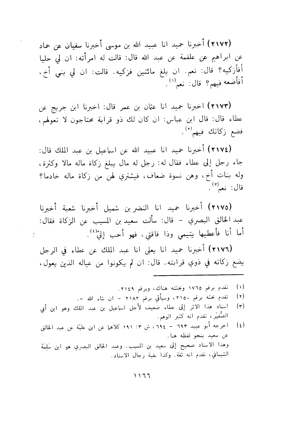 2173 - أَخْبَرَنَا حُمَيْدٌ أنا عُثْمَانُ بْنُ عُمَرَ قَالَ: أَخْبَرَنَا ابْنُ جُرَيْجٍ، عَنْ عَطَاءٍ قَالَ: قَالَ ابْنُ عَبَّاسٍ: «§إِنْ كَانَ لَكَ ذُو قَرَابَةٍ مُحْتَاجُونَ لَا تَعُولُهُمْ، فَضَعْ زَكَاتَكَ فِيهِمْ»