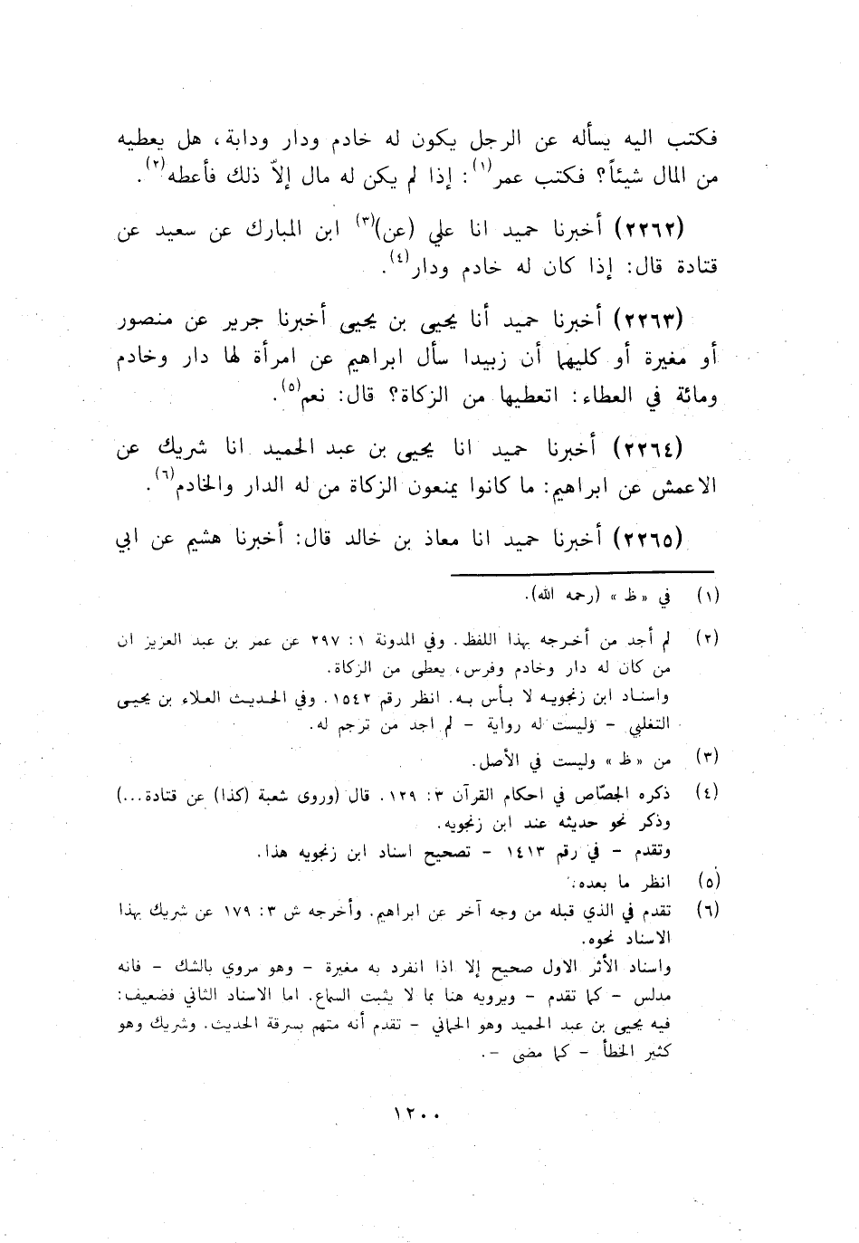 2264 - أَخْبَرَنَا حُمَيْدٌ أنا يَحْيَى بْنُ عَبْدِ الْحَمِيدِ، أنا شَرِيكٌ، عَنِ الْأَعْمَشِ، عَنْ إِبْرَاهِيمَ: «§مَا كَانُوا يَمْنَعُونَ الزَّكَاةَ مَنْ لَهُ الدَّارُ وَالْخَادِمُ»
