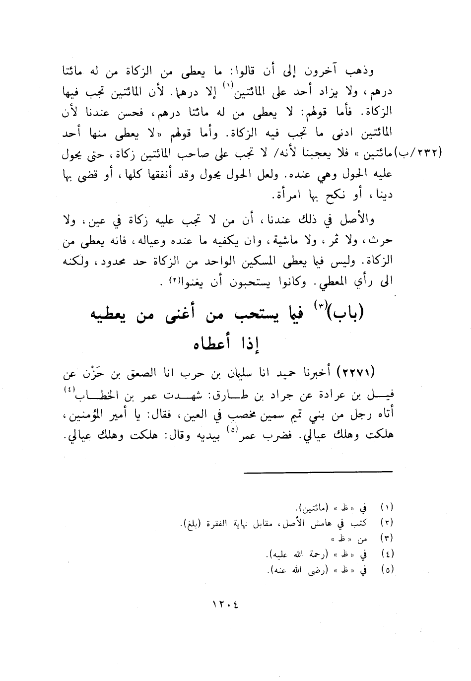 2271 - أَخْبَرَنَا حُمَيْدٌ أنا سُلَيْمَانُ بْنُ حَرْبٍ، أنا الصَّعْقُ بْنُ حَزْنٍ، عَنْ فِيلِ بْنِ عَرَادَةَ، عَنْ جَرَادِ بْنِ طَارِقٍ: شَهِدْتُ عُمَرَ بْنَ الْخَطَّابِ أَتَاهُ رَجُلٌ مِنْ بَنِي تَمِيمٍ سَمِينٌ مُخْصِبٌ فِي الْعَيْنِ، فَقَالَ: يَا أَمِيرَ الْمُؤْمِنِينَ، هَلَكْتُ وَهَلَكَ عِيَالِي، فَضَرَبَ عُمَرُ بِيَدَيْهِ وَقَالَ: هَلَكْتُ وَهَلَكَ عِيَالِي، -[1205]- يَنِثُّ كَأَنَّهُ حَمِيتٌ، لَقَدْ رَأَيْتُنِي وَأُخَيَّةً لِي وَإِنَّا لَنَرْعَى عَلَى أَبَوَيْنَا نَاضِحًا لَهُمَا، فَنَغْدُوا فَتُعْطِينَا أُمُّنَا يُمَيِّنَيْهَا مِنَ الْهَبِيدِ، وَتُلْقِي عَلَيْنَا نُقْبَةً لَهَا، فَإِذَا طَلَعَتِ الشَّمْسُ أَلْقَيْتُ النُّقْبَةَ عَلَى أُخْتِي وَخَرَجْتُ أَتْبَعُهَا عُرْيَانًا، ثُمَّ نَرْجِعُ إِلَيْهَا وَقَدْ صَنَعَتْ لَنَا لَفِيتَةً مِنْ ذَلِكَ الْهَبِيدِ فَنَتَعَشَّاهَا، فَيَا خَصْبَاهُ، ثُمَّ قَالَ: §أَعْطُوهُ رُبَعَةً مِنْ غُنْمِ نَعَمِ الصَّدَقَةِ وَمَا تَبِعَهَا، قَالَ: فَخَرَجَتْ يَتْبَعُهَا ظِئْرَانِ لَهَا، قَالَ: فَمَا حَسَدْتُ أَحَدًا مَا حَسَدْتُ ذَلِكَ التَّمِيمِيَّ، قَالَ: ثُمَّ قَالَ عُمَرُ: وَاللَّهِ يَا أَخَا تَمِيمٍ إِنَّ صَاحِبَكُمْ لَشَعَّارٌ حِينَ يَقُولُ -[1206]- وَمُطْعَمُ الْغُنْمِ يَوْمَ الْغُنْمِ مُطْعَمُهُ أَنَّى تَوَجَّهَ وَالْمَحْرُومُ مَحْرُومُ