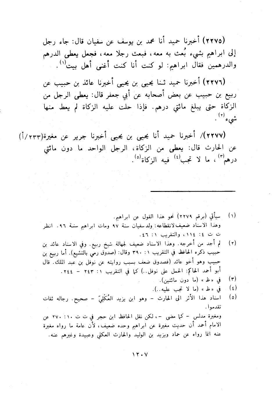 2277 - أَخْبَرَنَا حُمَيْدٌ أنا يَحْيَى بْنُ يَحْيَى، أَخْبَرَنَا جَرِيرٌ، عَنْ مُغِيرَةَ، عَنِ الْحَارِثِ قَالَ: «§يُعْطَى مِنَ الزَّكَاةِ الرَّجُلُ الْوَاحِدُ مَا دُونَ مِائَتَيْ دِرْهَمٍ، مَا لَا تَجِبُ فِيهِ الزَّكَاةُ»