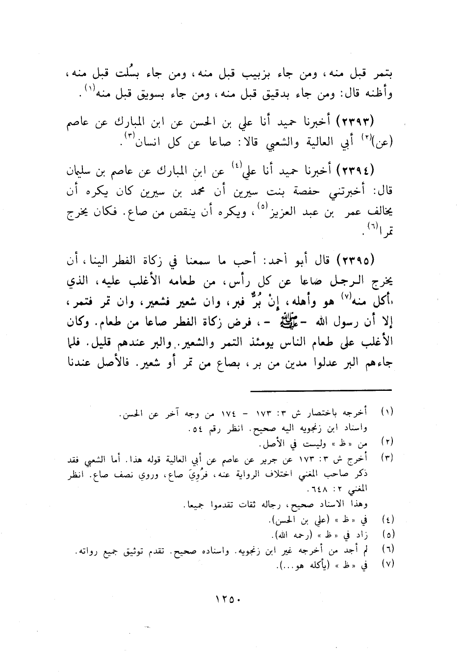 2393 - أَخْبَرَنَا حُمَيْدٌ أنا عَلِيُّ بْنُ الْحَسَنِ، عَنِ ابْنِ الْمُبَارَكِ، عَنْ عَاصِمٍ، عَنْ أَبِي الْعَالِيَةِ، وَالشَّعْبِيِّ قَالَا: «§صَاعًا عَنْ كُلِّ إِنْسَانٍ»