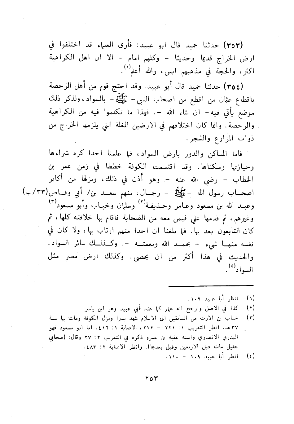 363 - حَدَّثَنَا حُمَيْدٌ حَدَّثَنَا مُحَمَّدُ بْنُ يُوسُفَ، أنا سُفْيَانُ، عَنْ قَيْسِ بْنِ مُسْلِمٍ، عَنْ طَارِقِ بْنِ شِهَابٍ، أَنَّ دِهْقَانَةَ نَهْرِ الْمَلِكِ أَسْلَمَتْ وَلَهَا كَثِيرُ أَرْضٍ، فَكَتَبَ عُمَرُ أَنِ «§ادْفَعُوا إِلَيْهَا أَرْضَهَا، فَتُؤَدِّيَ عَنْهَا الْخَرَاجَ»