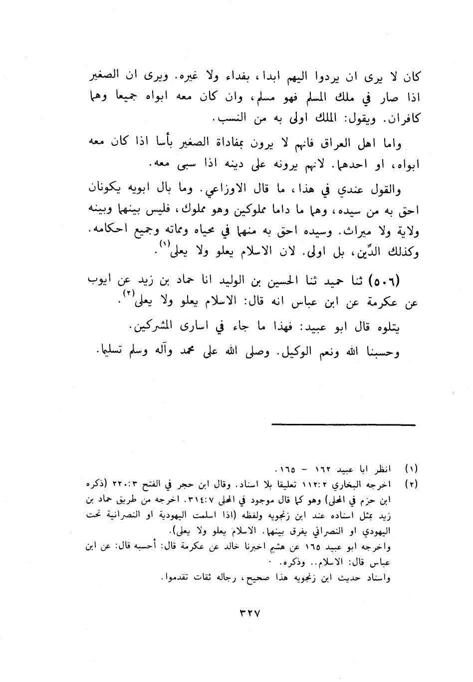 506 - ثَنَا حُمَيْدٌ ثنا الْحُسَيْنُ بْنُ الْوَلِيدِ، أنا حَمَّادُ بْنُ زَيْدٍ، عَنْ أَيُّوبَ، عَنْ عِكْرِمَةَ، عَنِ ابْنِ عَبَّاسٍ، أَنَّهُ قَالَ: «§الْإِسْلَامُ يَعْلُو، وَلَا يُعْلَى» .