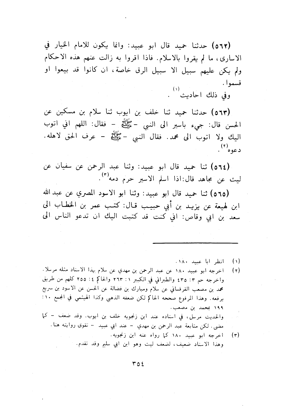 564 - قَالَ أَبُو عُبَيْدٍ: وثنا عَبْدُ الرَّحْمَنِ، عَنْ سُفْيَانَ، عَنْ لَيْثٍ، عَنْ مُجَاهِدٍ، قَالَ: «§إِذَا أَسْلَمَ الْأَسِيرُ حُرِّمَ دَمُهُ»