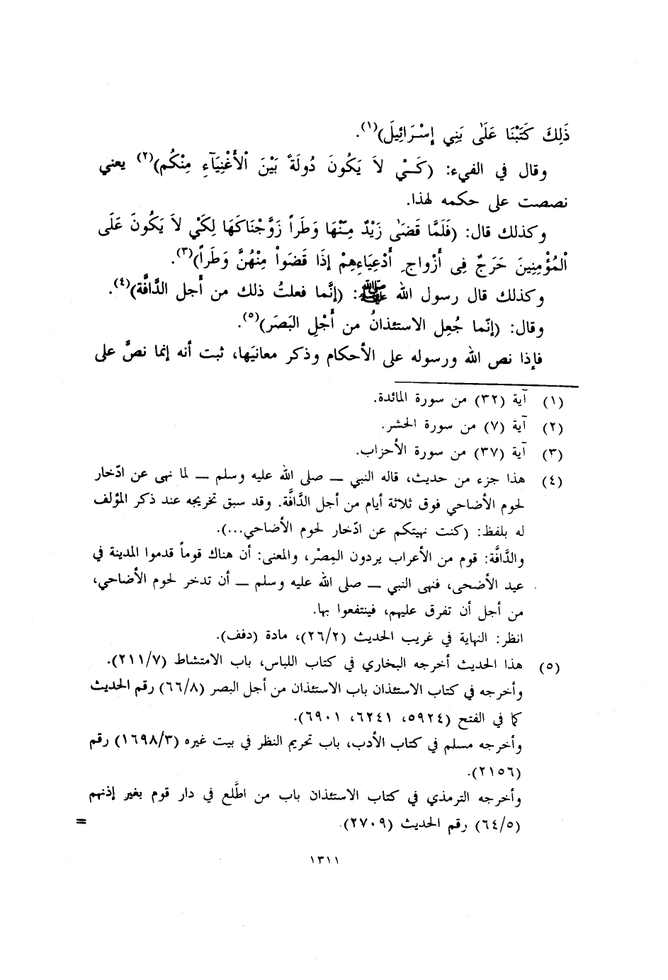 وقال: (إنّما جُعِل الاستئذانُ من أجلِ البَصَر) (٥) .