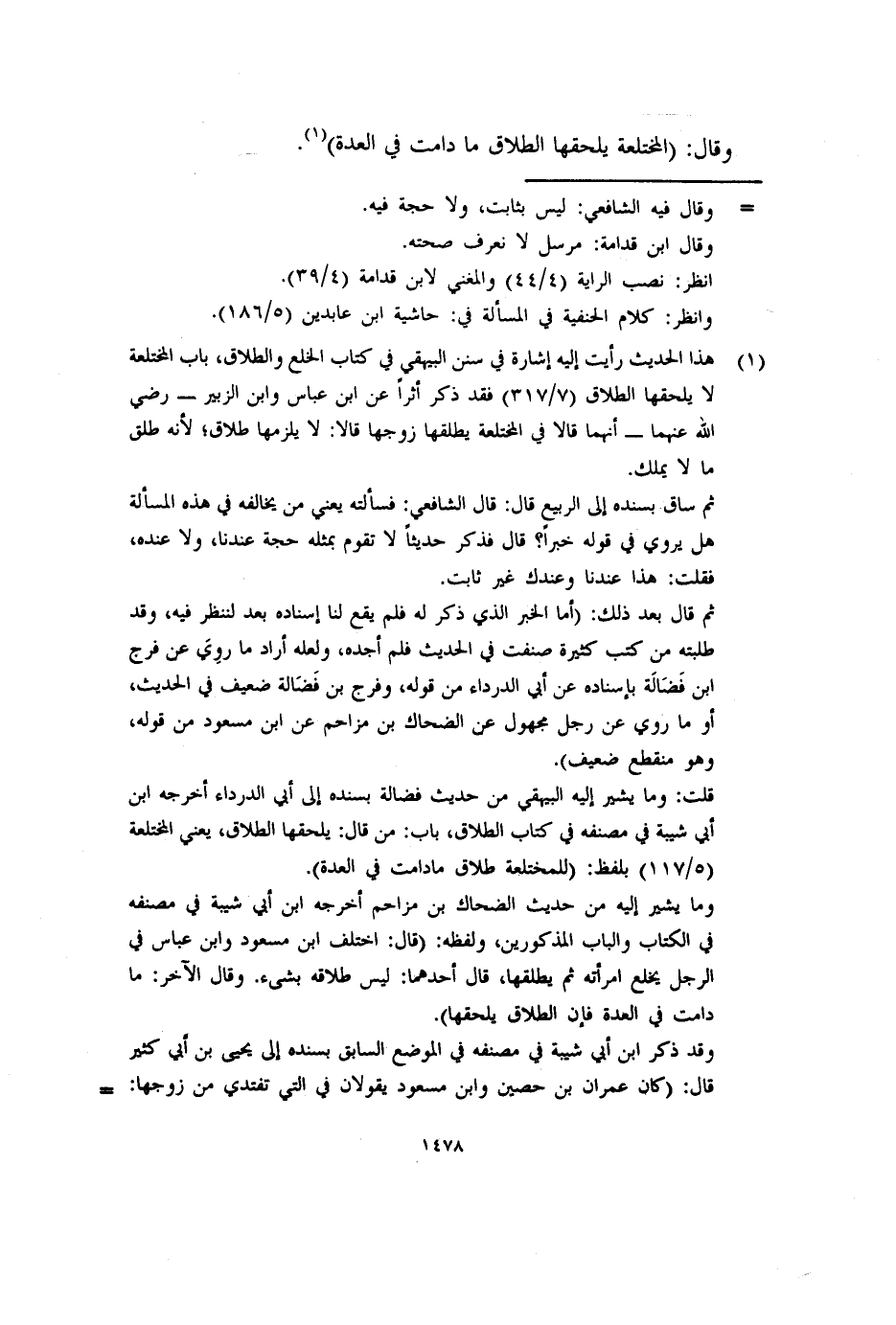 وقد ذكر ابن أبي شيبة في مصنفه في الموضع السابق بسنده إلى يحيى بن أبي كثير قال: (كان عمران بن حصين وابن مسعود يقولان في التي تفتدي من زوجها: =