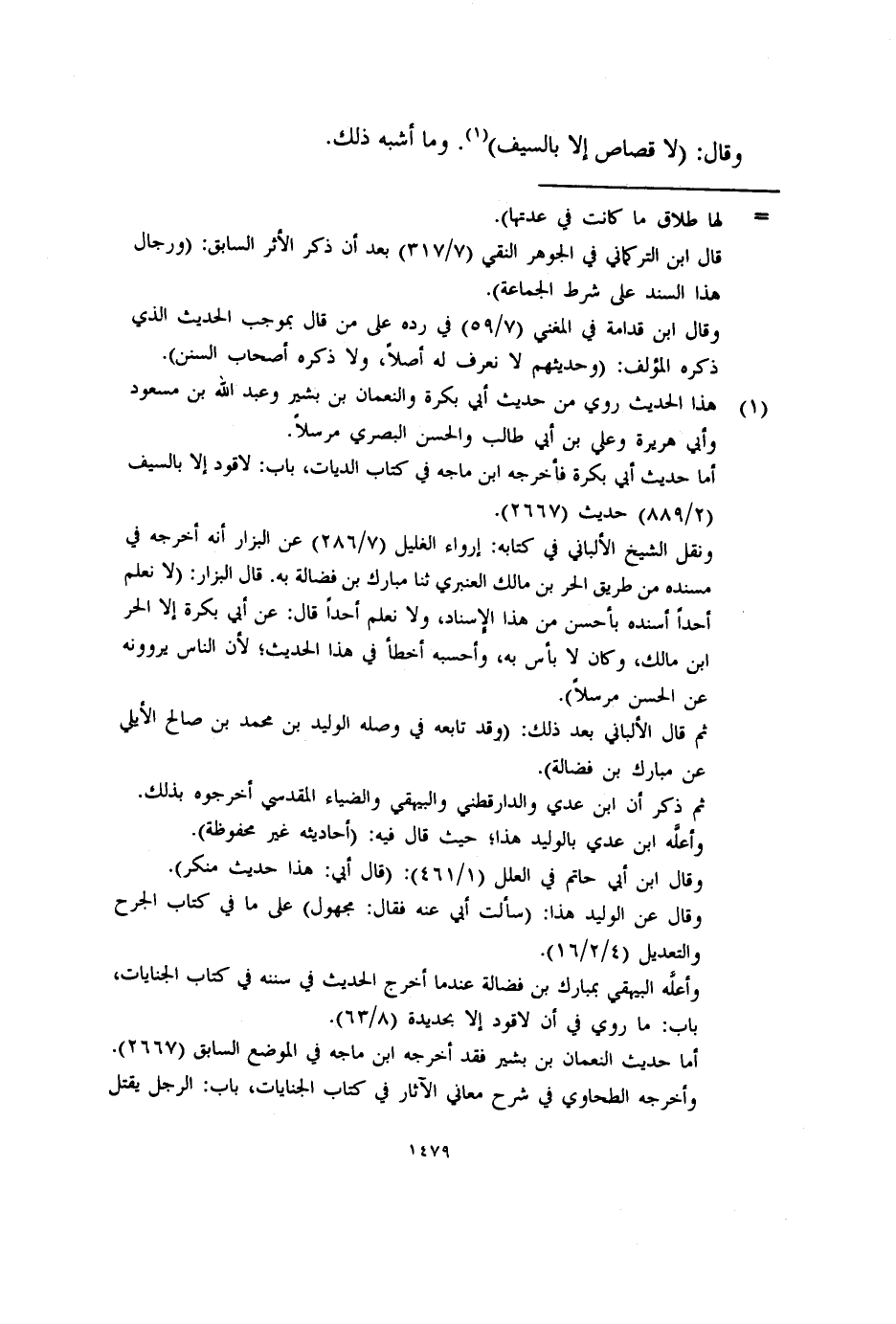 وقال ابن قدامة في المغني (٧/٥٩) في رده على من قال بموجب الحديث الذى ذكره المؤلف: (وحديثهم لا نعرف له أصلاً، ولا ذكره أصحاب السنن) .