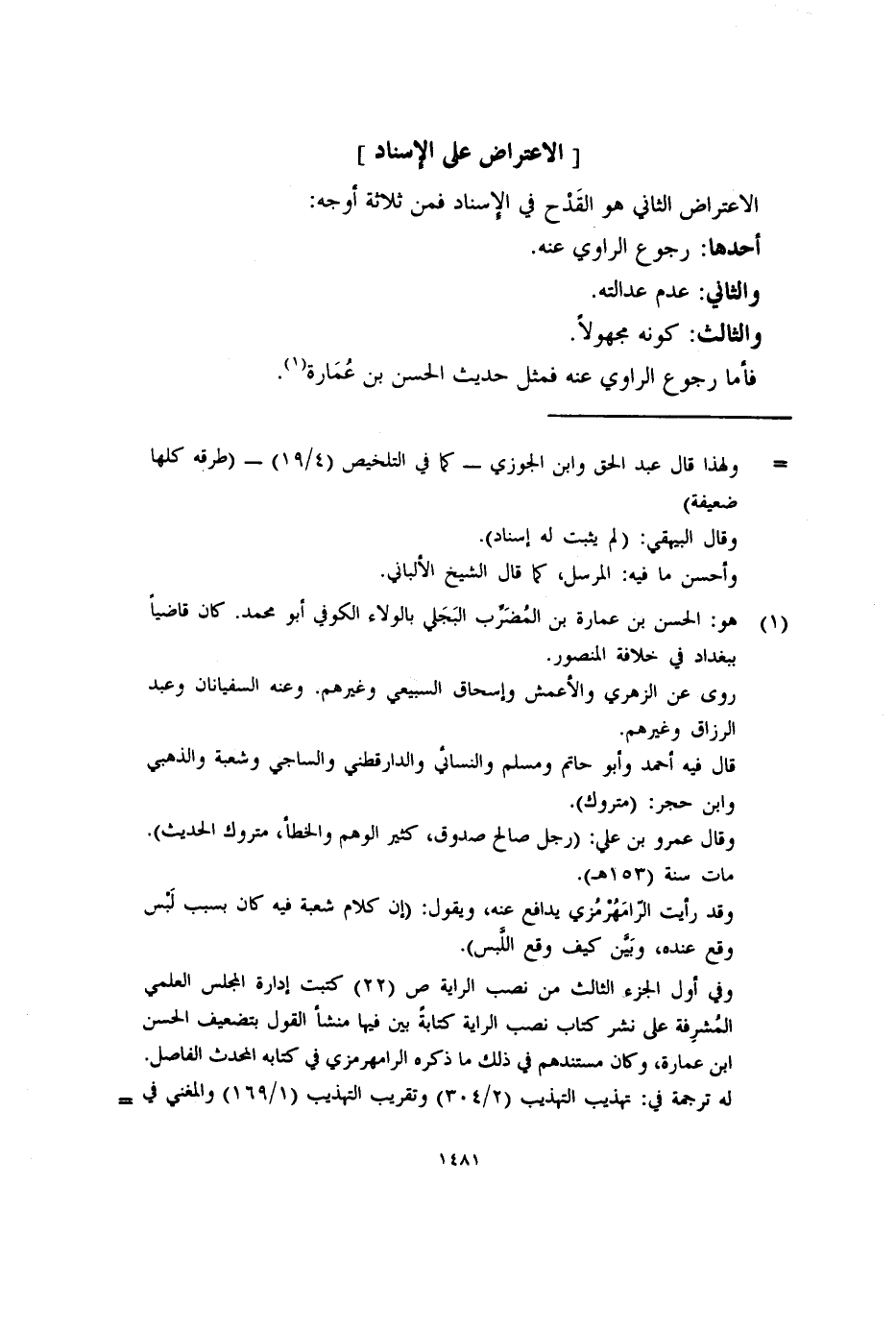 الاعتراض الثاني هو القَدْح في الإِسناد فمن ثلاثة أوجه: