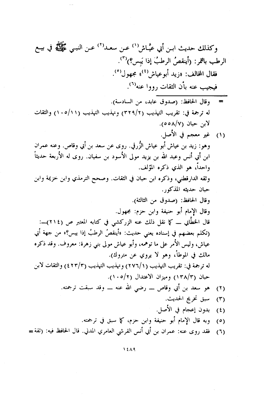 (تكلم بعضهم في إسناده يعني حديث: "أينقص الرطبُ إذا يبس؟ " من جهة أبي عياش، وليس الأمر على ما توهمه، وأبو عياش مولى بني زهرة: معروف. وقد ذكره مالك في الموطأ، وهو لا يروى عن متروك) .