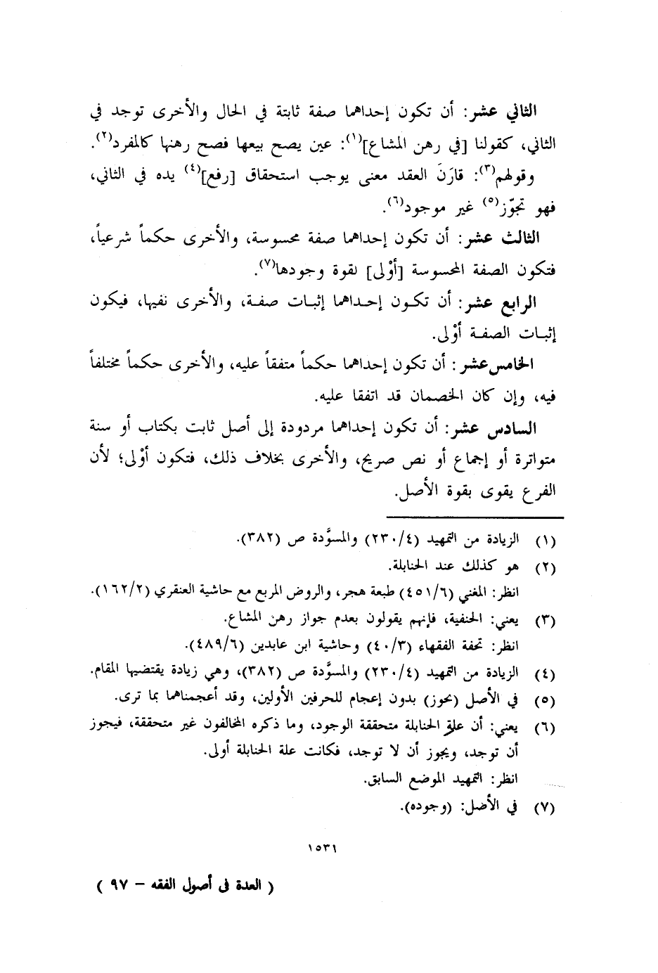 (٦) يعني: أن علة الحنابلة متحققة الوجود، وما ذكره المخالفون غير متحققة، فيجوز أن توجد، ويجوز أن لا توجد، فكانت علة الحنابلة أولى.