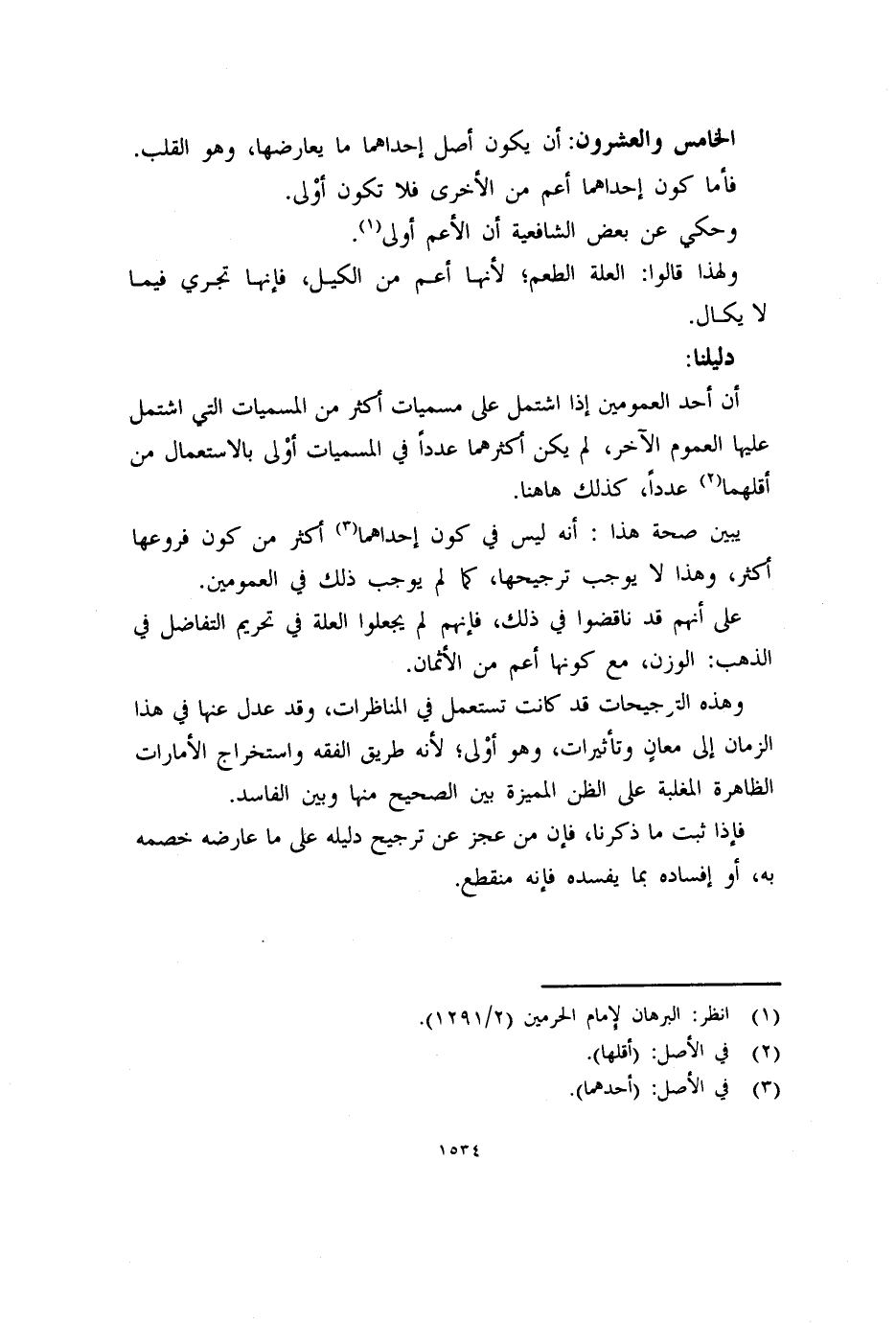 وهذه الترجيحات قد كانت تستعمل في المناظرات، وقد عدل عنها في هذا الزمان إلى معانٍ وتأثيرات، وهو أوْلى؛ لأنه طريق الفقه واستخراج الأمارات الظاهرة المغلبة على الظن المميزة بين الصحيح منها وبين الفاسد.