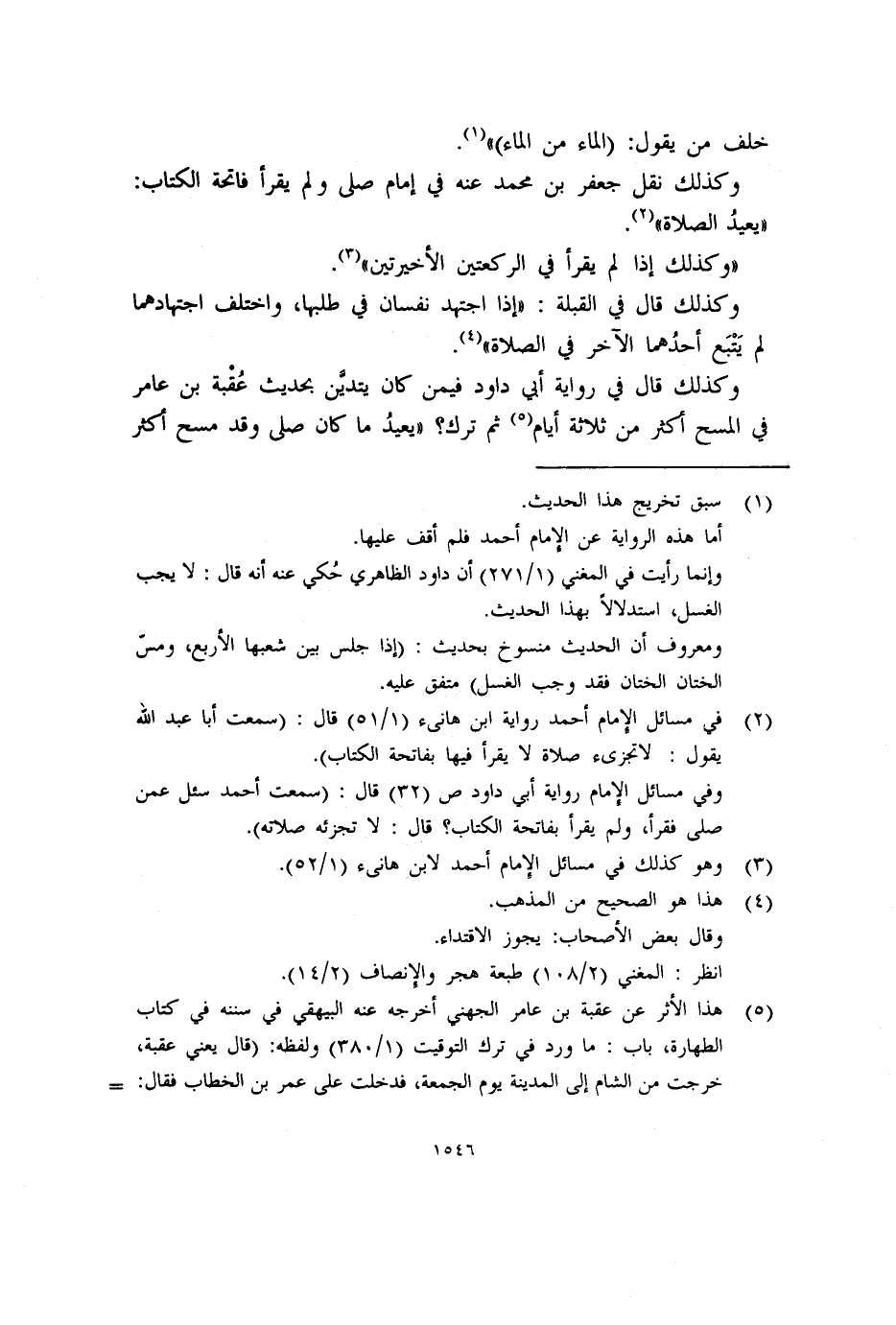 (٣) وهو كذلك في مسائل الإِمام أحمد لابن هانىء (١/٥٢) .