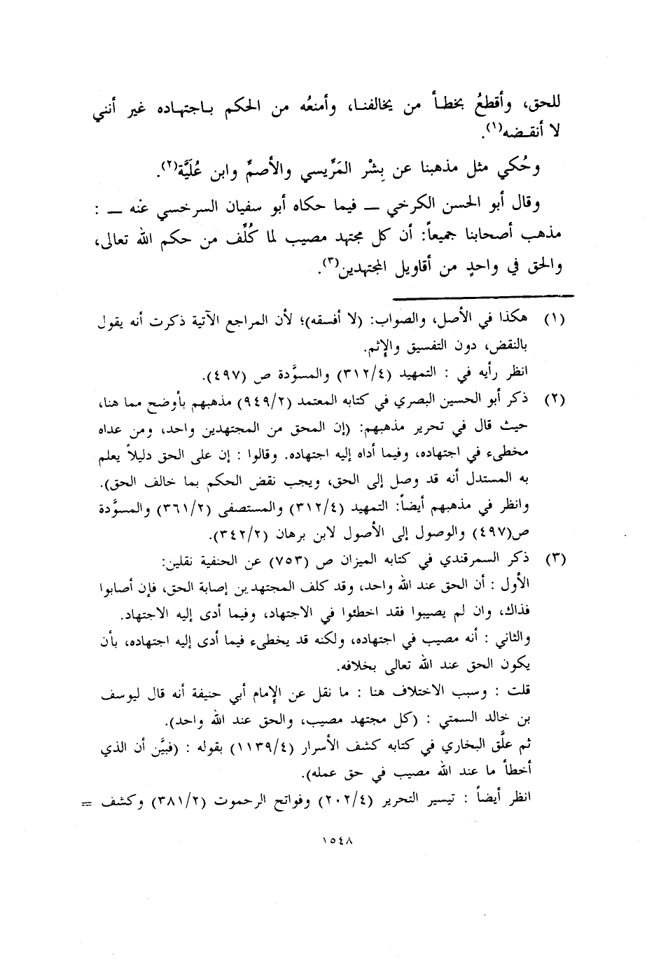 (٢) ذكر أبو الحسين البصري في كتابه المعتمد (٢/٩٤٩) مذهبهم بأوضح مما هنا، حيث قال في تحرير مذهبهم: (إن المحق من المجتهدين واحد، ومن عداه مخطىء في اجتهاده، وفيما أداه إليه اجتهاده. وقالوا: إن على الحق دليلاً يعلم به المستدل أنه قد وصل إلى الحق، ويجب نقض الحكم بما خالف الحق) .
