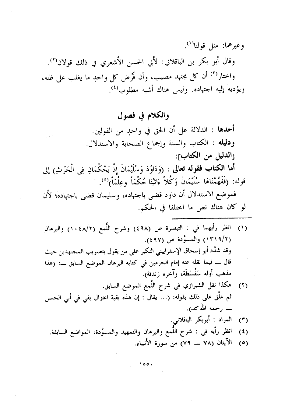 أما الكتاب فقوله تعالى: (وَدَاوُدَ وَسُلَيْمَانَ إِذ يحكمانِ في الحرثِ) إلى قوله: (فَفَهَّمْنَاهَا سُلَيْمَانَ وَكُلاًءَاتَيْنَا حُكْمَاً وعِلْمَاً) (٥) .
