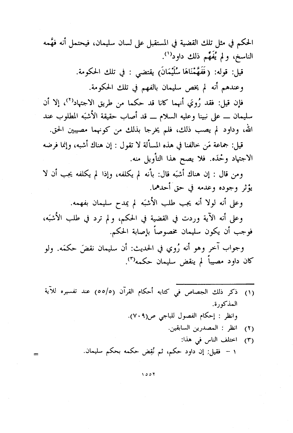 فإن قيل: فقد رُويَ أنهما كانا قد حكما من طريق الاجتهاد (٢) ، إلا أن سليمان -على نبينا وعليه السلام- قد أصاب حقيقة الأشبَه المطلوب عند الله، وداود لم يصب ذلك، فلم يخرجا بذلك من كونهما مصيبين الحق.