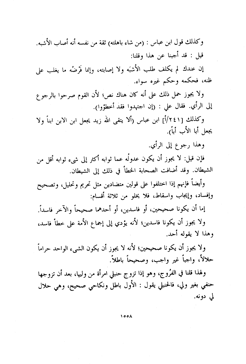 ولا يجوز حمل ذلك على أنه كان هناك نص؛ لأن القوم صرحوا بالرجوع إلى الرأي. فقال علي: (إن اجتهدوا فقد أخطؤوا) .