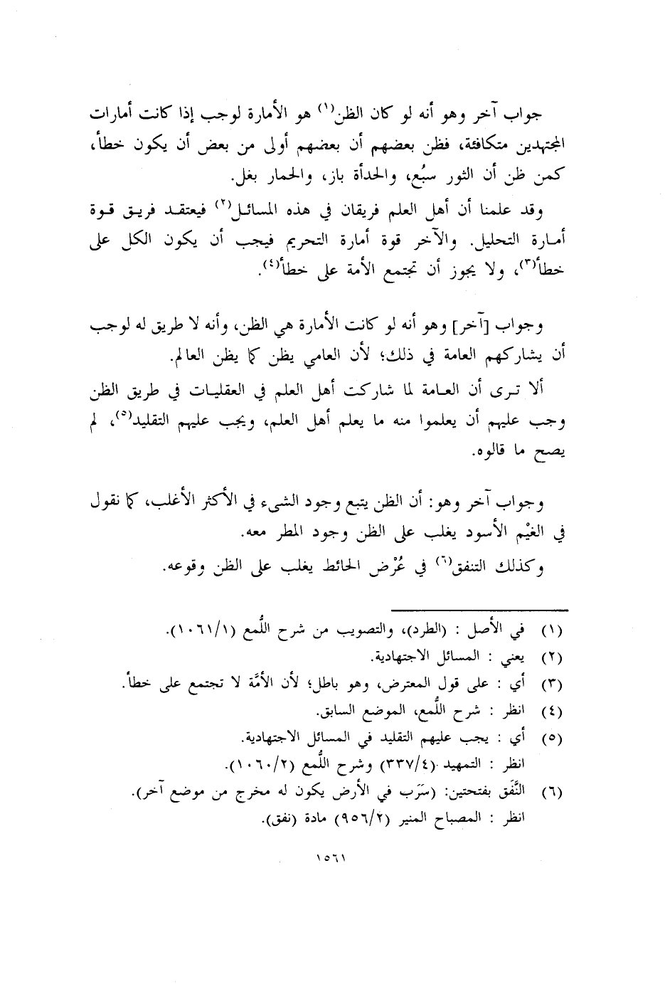 وقد علمنا أن أهل العلم فريقان في هذه المسائل (٢) فيعتقد فريق قوة أمارة التحليل. والآخر قوة أمارة التحريم فيجب أن يكون الكل على خطأ (٣) ، ولا يجوز أن تجتمع الأمة على خطأ (٤) .