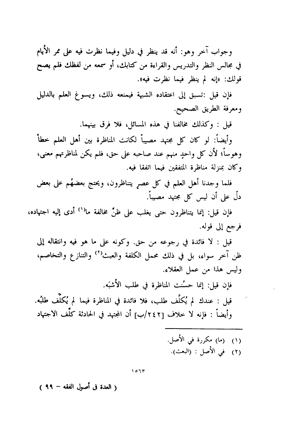 فلما وجدنا أهل العلم في كل عصرٍ يتناظرون، ويحتج بعضهُم على بعض دلّ على أن ليس كل مجتهد مصيباً.