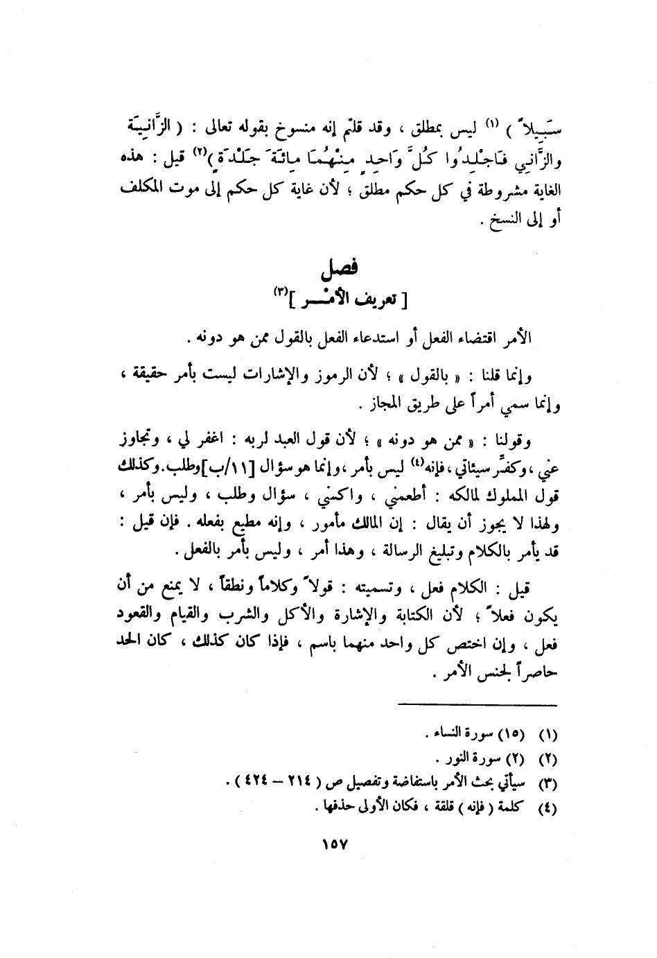 وقولنا: "ممن هو دونه"؛ لأن قول العبد لربه: اغفر لي، وتجاوز عني، وكفر سيئاتي، فإنه٢ ليس بأمر، وإنما هو سؤال [١١/ ب] وطلب. وكذلك قول المملوك لمالكه: أطعمني، واكسني، سؤال وطلب، وليس بأمر؛ولهذا لايجوز أن يقال: إن المالك مأمور، وإنه مطيع بفعله. فإن قيل: قد يأمر بالكلام وتبليغ الرسالة، وهذا أمر، وليس بأمر بالفعل.