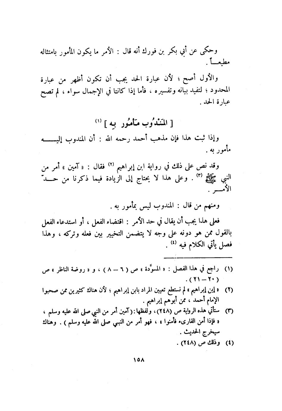 وإذا ثبت هذا فإن مذهب أحمد -رحمه الله- أن المندوب إليه مأمور به.