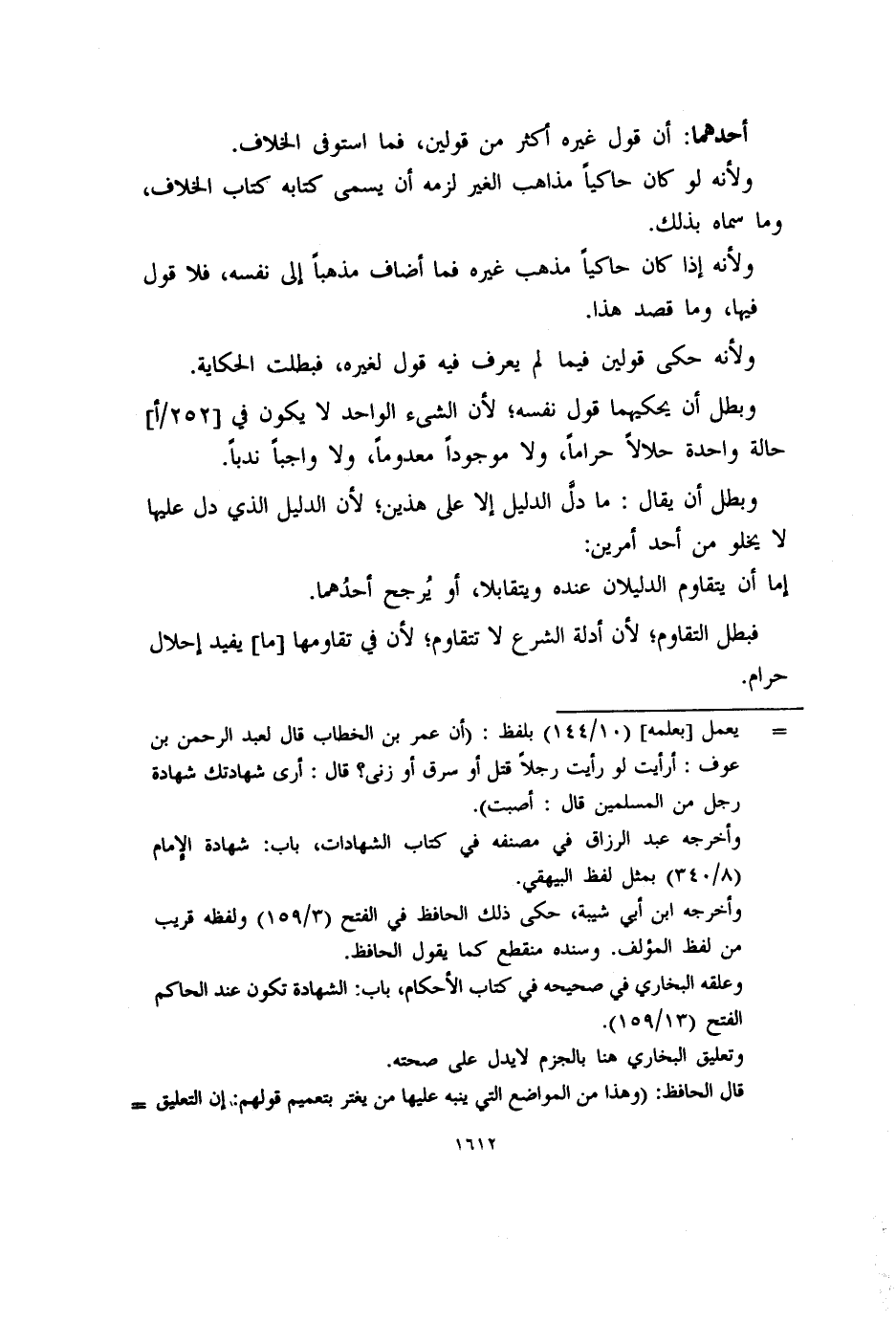 وبطل أن يحكيهما قول نفسه؛ لأن الشىء الواحد لا يكون في [٢٥٢/أ] حالة واحدة حلالاً حراماً، ولا موجوداً معدوماً، ولا واجباً ندباً.