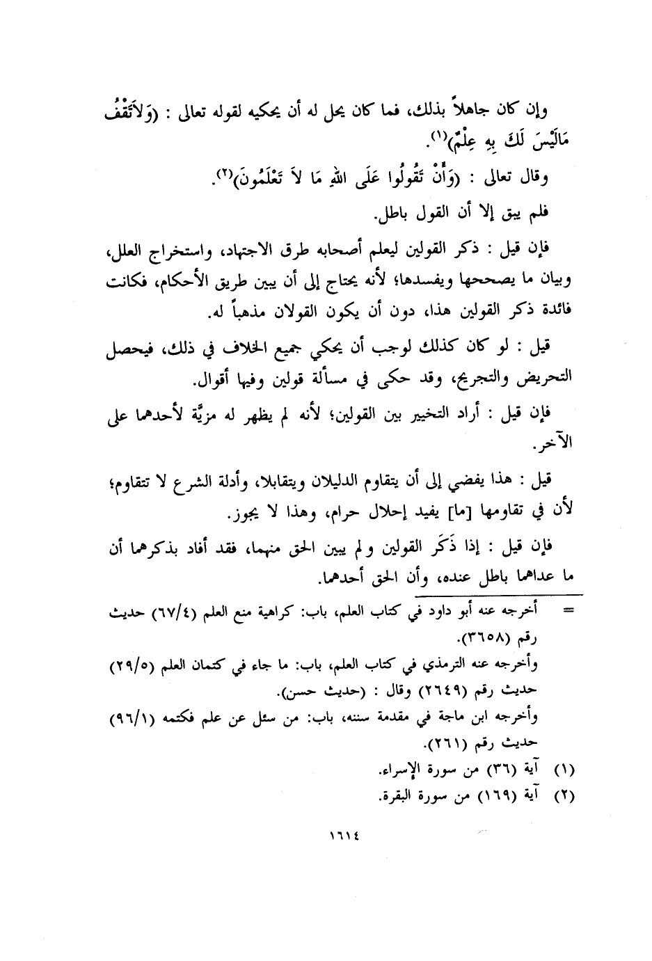 وإن كان جاهلاً بذلك، فما كان يحل له أن يحكيه لقوله تعالى: (وَلاَ تَقْفُ مَا لَيْسَ لَكَ بِهِ عِلْم) (١) .