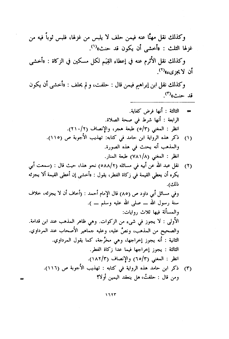 (٣) ذكر ابن حامد هذه الرواية في كتابه: تهذيب الأجوبة ص (١١٦) .