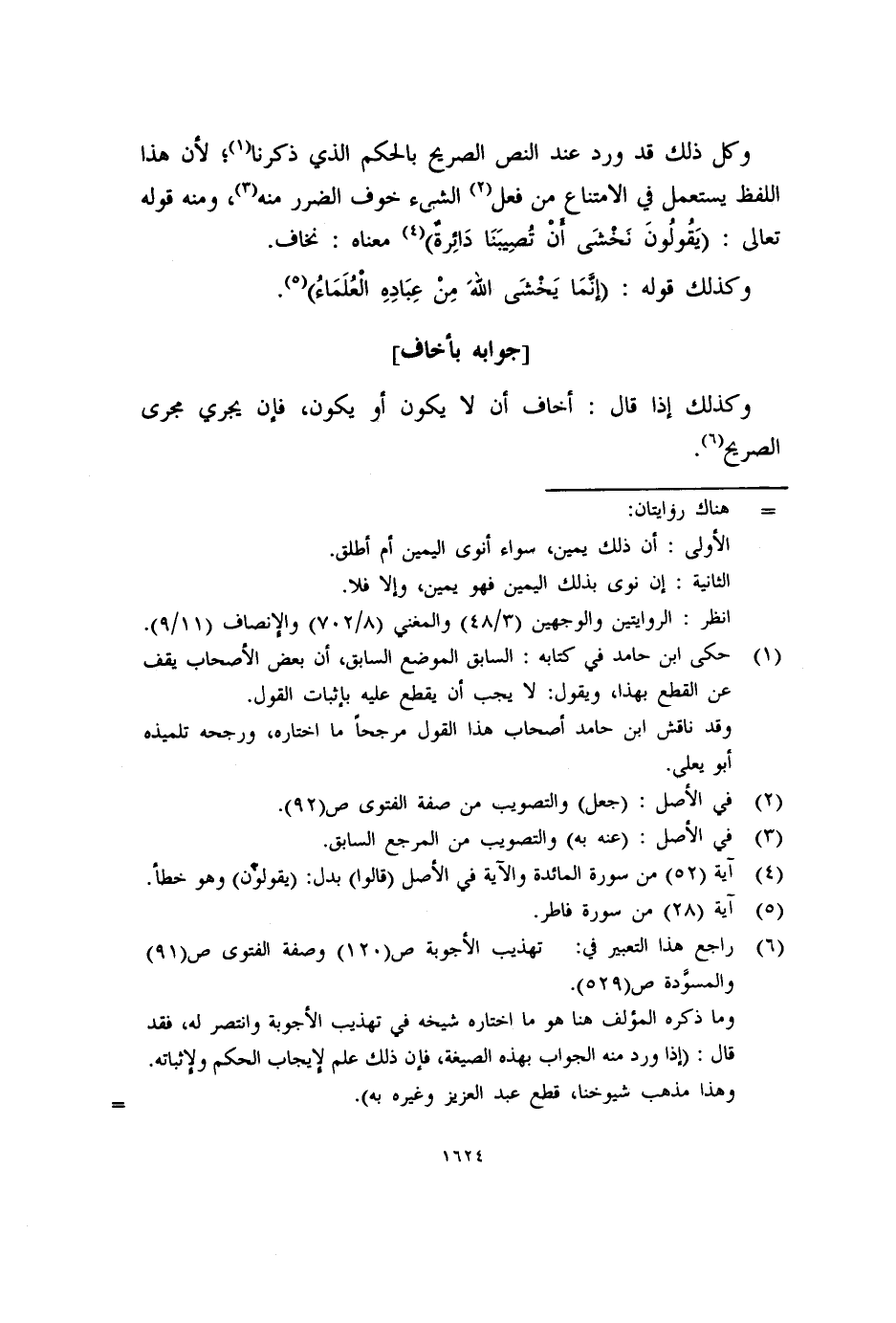 (٦) راجع هذا التعبير في: تهذيب الأجوبة ص (١٢٠) وصفة الفتوى ص (٩١) والمسودة ص (٥٢٩) .