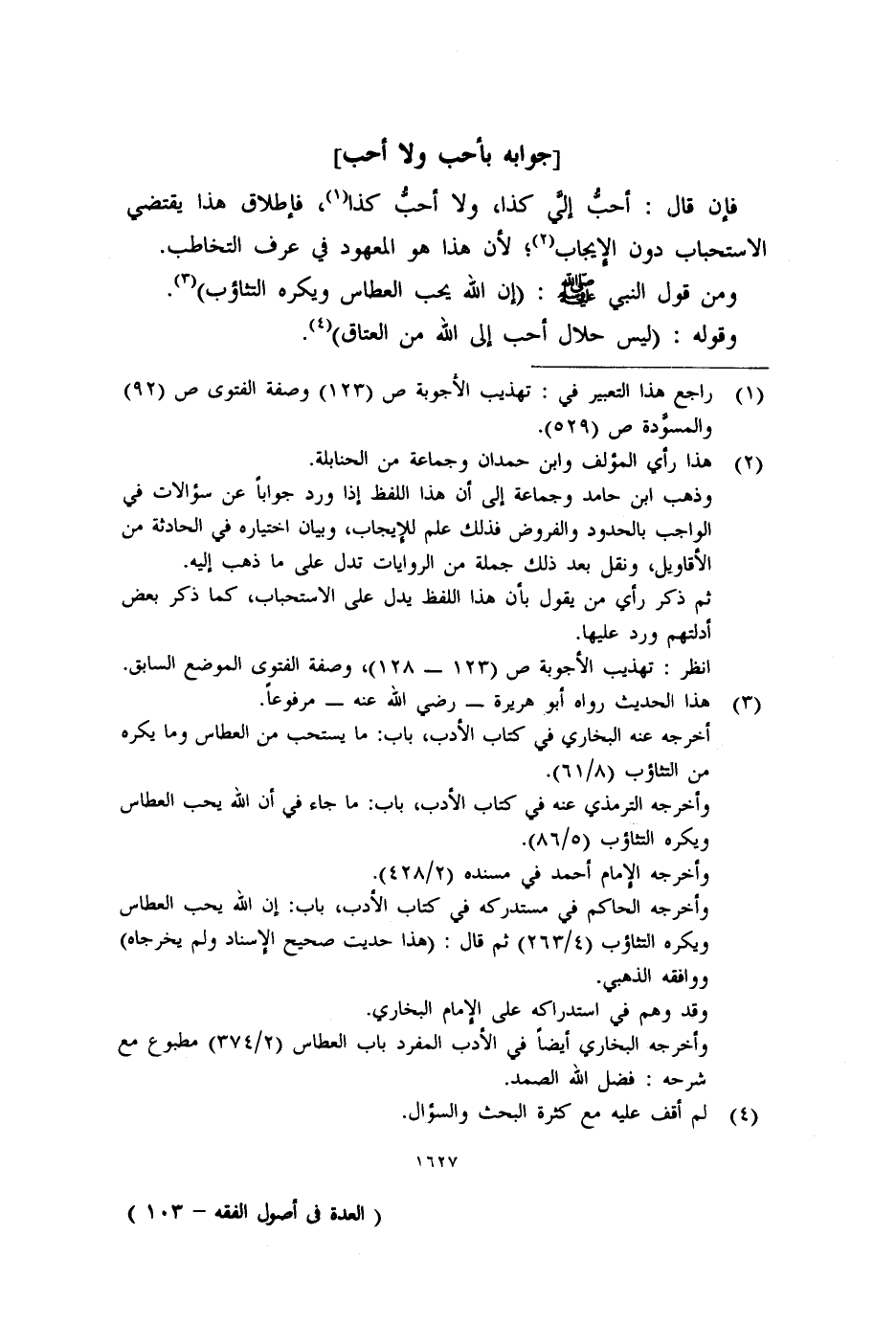 (١) راجع هذا التعبير في: تهذيب الأجوبة ص (١٢٣) وصفة الفتوى ص (٩٢) والمسودة ص (٥٢٩) .