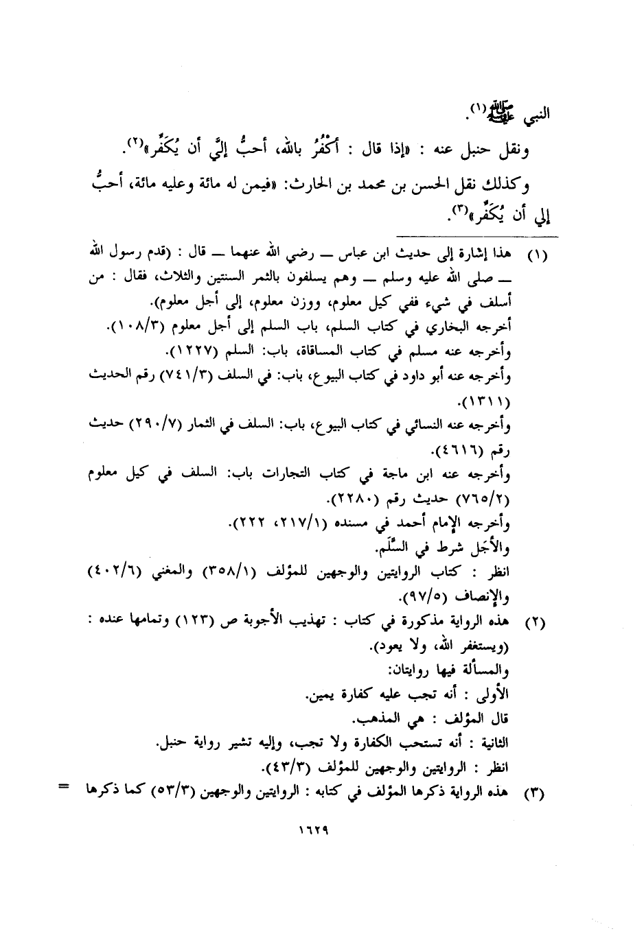 (١) هذا إشارة إلى حديث ابن عباس -رضي الله عنهما- قال: (قدم رسول الله - صلى الله عليه وسلم - وهم يسلفون بالثمر السنتين والثلاث، فقال: من أسلف في شيء ففي كيل معلوم، ووزن معلوم، إلى أجل معلوم) .