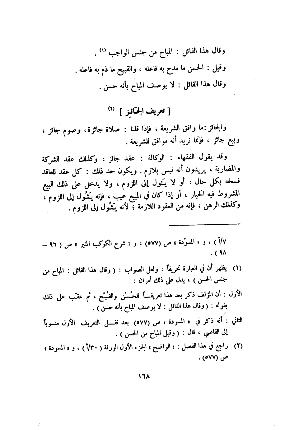 الأول: أن المؤلف ذكر بعد هذا تعريفًا للحسن والقبح، ثم عقَّب على ذلك بقوله: "وقال هذا القائل: لا يوصف المباح بأنه حسن".
