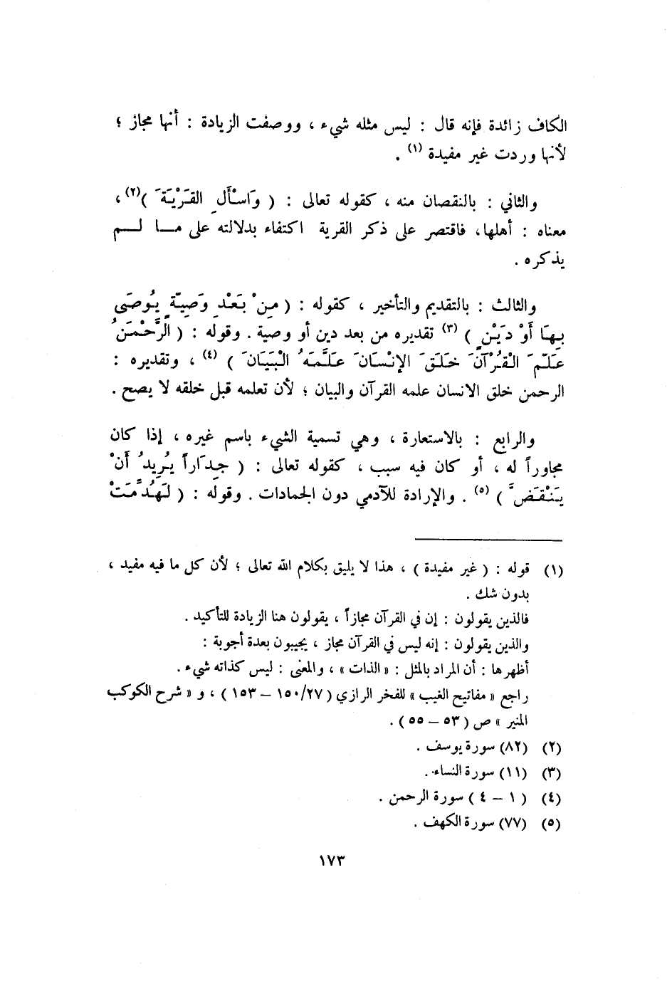 راجع: "مفاتيح الغيب" للفخر الرازي "٢٧/ ١٥٠- ١٥٣"، و"شرح الكوكب المنير" "ص: ٥٣- ٥٥".