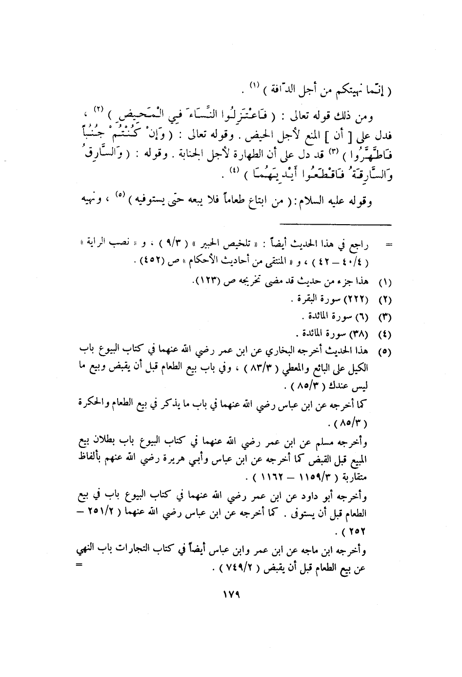٥ هذا الحديث أخرجه البخاري عن ابن عمر -رضي الله عنهما- في كتاب البيوع، باب الكيل على البائع والمعطي "٣/ ٨٣"، وفي باب بيع الطعام قبل أن يقبض وبيع ما ليس عندك "٣/ ٨٥".