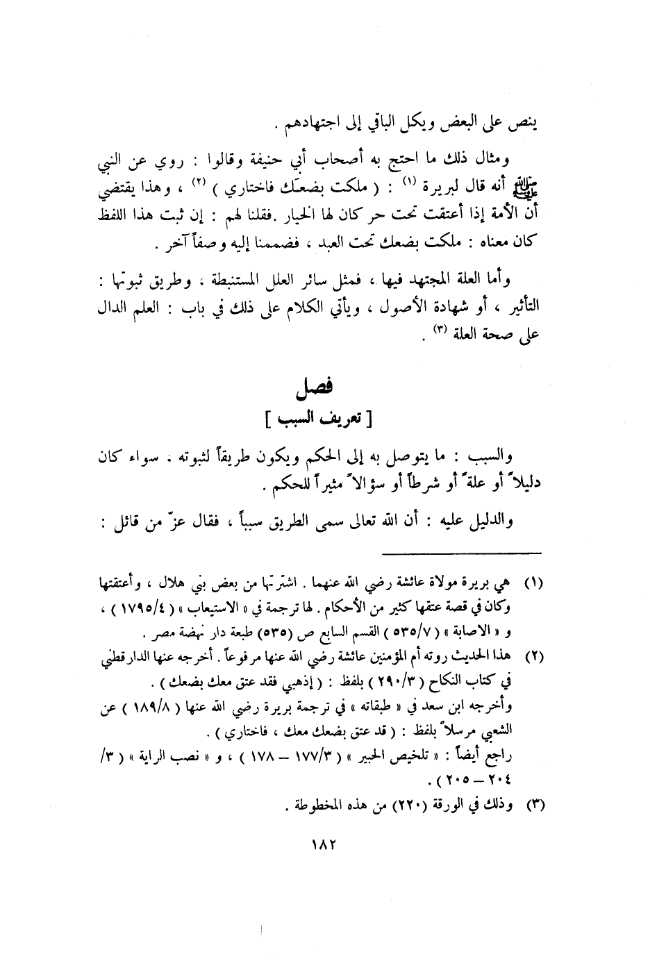 والسبب: ما يتوصل به إلى الحكم ويكون طريقًا لثبوته، سواء كان دليلا أو علة أو شرطًا أو سؤالا مثيرًا للحكم.