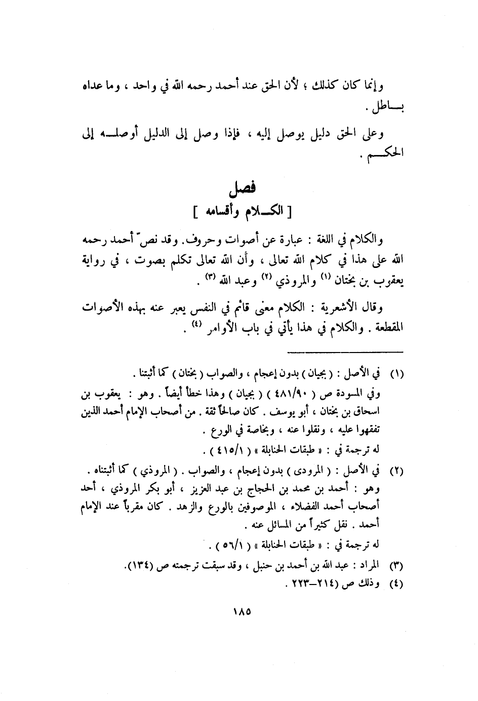 والكلام في اللغة: عبارة عن أصوات وحروف. وقد نص أحمد -رحمه الله- على هذا في كلام الله تعالى، وأن الله تعالى تكلم بصوت، في رواية يعقوب بن بختان١ والمروذي٢ وعبد الله٣.