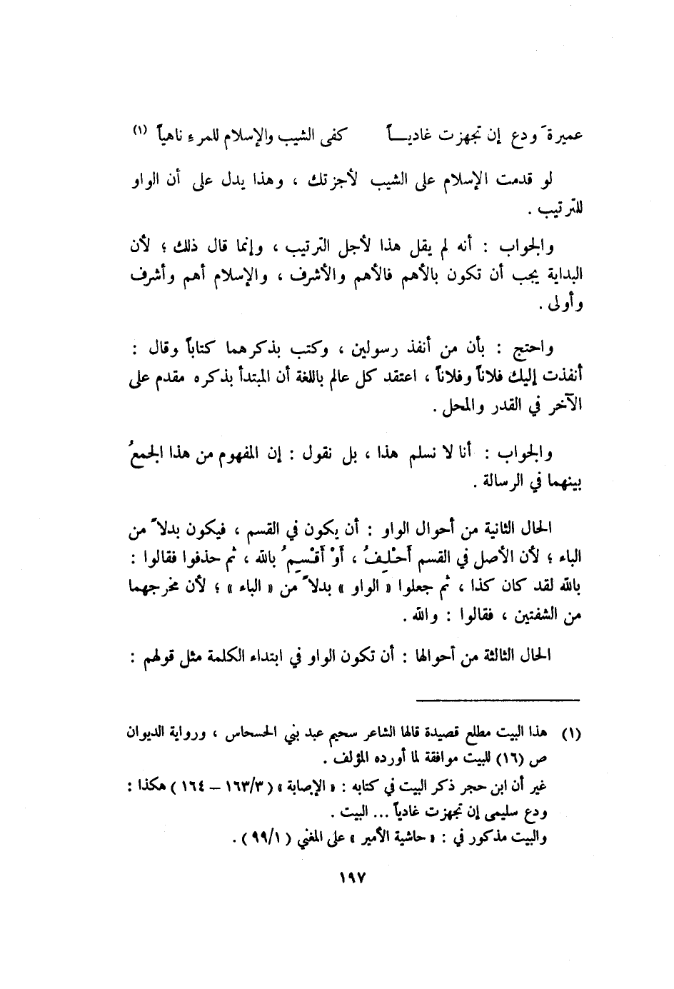 ١ هذا البيت مطلع قصيدة قالها الشاعر سحيم عبد بني الحسحاس، ورواية الديوان "ص: ١٦" للبيت موافقة لما أورده المؤلف، غير أن ابن حجر ذكر البيت في كتابه: "الإصابة" "٣/ ١٦٣، ١٦٤" هكذا: