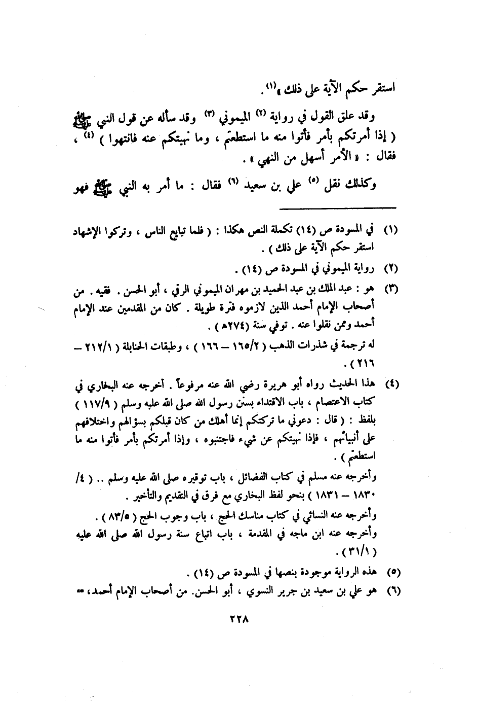 ٢ رواية الميموني في المسودة "ص: ١٤".