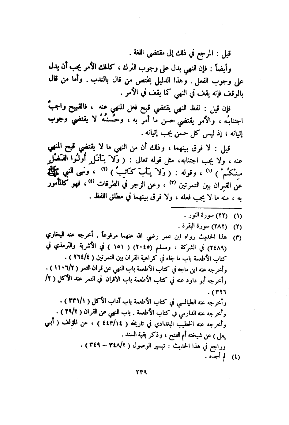 قيل: لا فرق بينهما، وذلك أن من النهي ما لا يقتضي قبح المنهي عنه، ولا يجب اجتنابه. مثل قوله تعالى: {وَلا يَأْتَلِ أُوْلُوا الْفَضْلِ مِنْكُم} ١، وقوله: {وَلا يَأْبَ كَاتِبٌ} ٢، ونهى النبي -صلى الله عليه وسلم- عن القران بين التمرتين٣، وعن الزجر في الطرقات٤، فهو كالمأمور به، منه ما لا يجب فعله، ولا فرق بينهما في مطلق اللفظ.