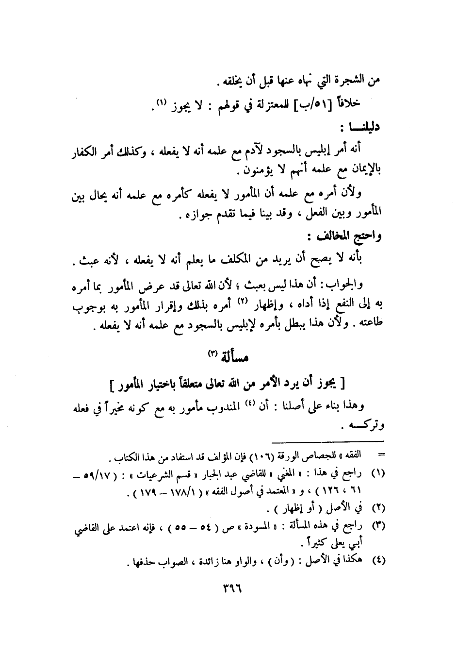 ٣ انظر: كتاب المغني للقاضي عبد الجبار قسم الشرعيات: "١٧/ ١٢٦"، والمعتمد لأبي الحسن البصري: "١/ ١٧٨".