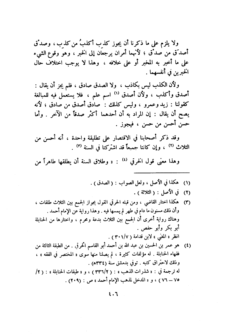 ٤ هو عمر بن الحسين بن عبد الله بن أحمد أبو القاسم الحرقي. من الطبقة الثالثة من فقهاء الحنابلة. له مؤلفات كثيرة، لم يصلنا منها سوى "المختصر في الفقه"، وذلك لاحتراق كتبه. توفي بدمشق "٣٣٤هـ".