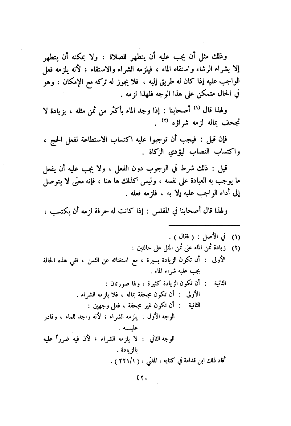 ولهذا قال١ أصحابنا: إذا وجد الماء بأكثر من ثمن مثله، بزيادة لا تجحف بماله؛ لزمه شراؤه٢.