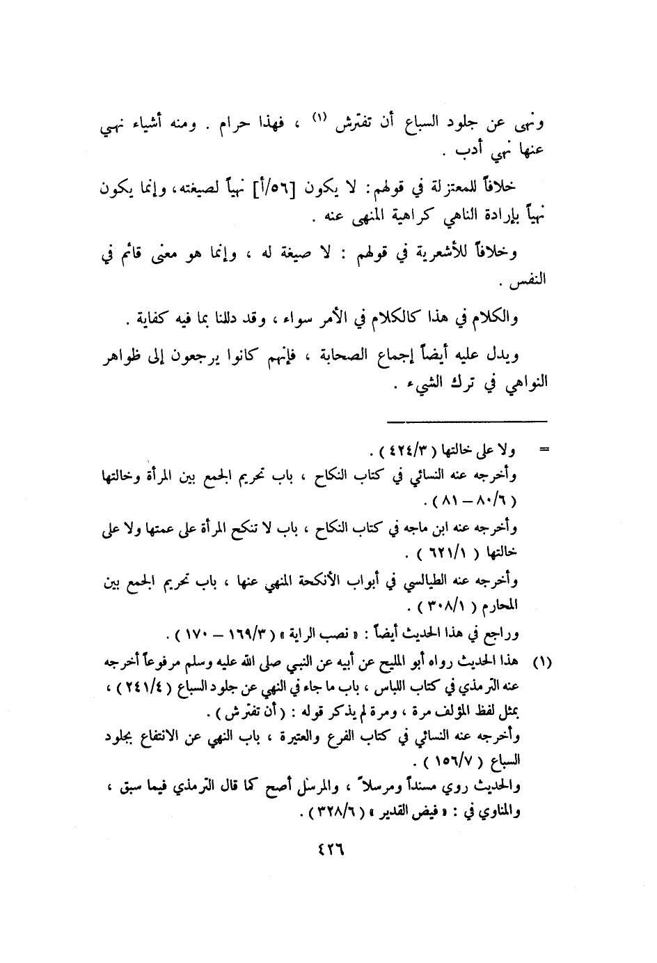 ١ هذا الحديث رواه أبو المليح عن أبيه عن الني صلى الله عليه وسلم مرفوعًا أخرجه عنه الترمذي في كتاب اللباس، باب ما جاء في النهي عن جلود السباع "٤/٢٤١"، بمثل لفظ المؤل فمرة، ومرة لم يذكر قوله: "أن تفترش".