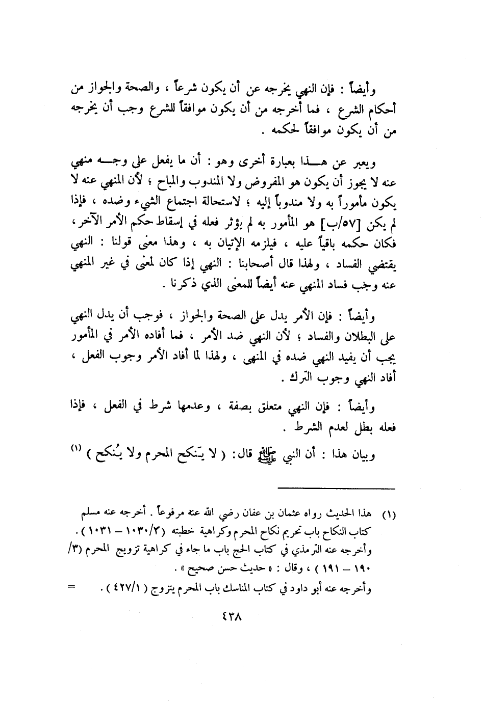 وأيضًا: فإن النهي يخرجه عن أن يكون شرعًا، والصحة والجواز من أحكام الشرع، فما أخرجه من أن يكون موافقًا للشرع وجب أن يخرجه من أن يكون موافقًا لحكمه.