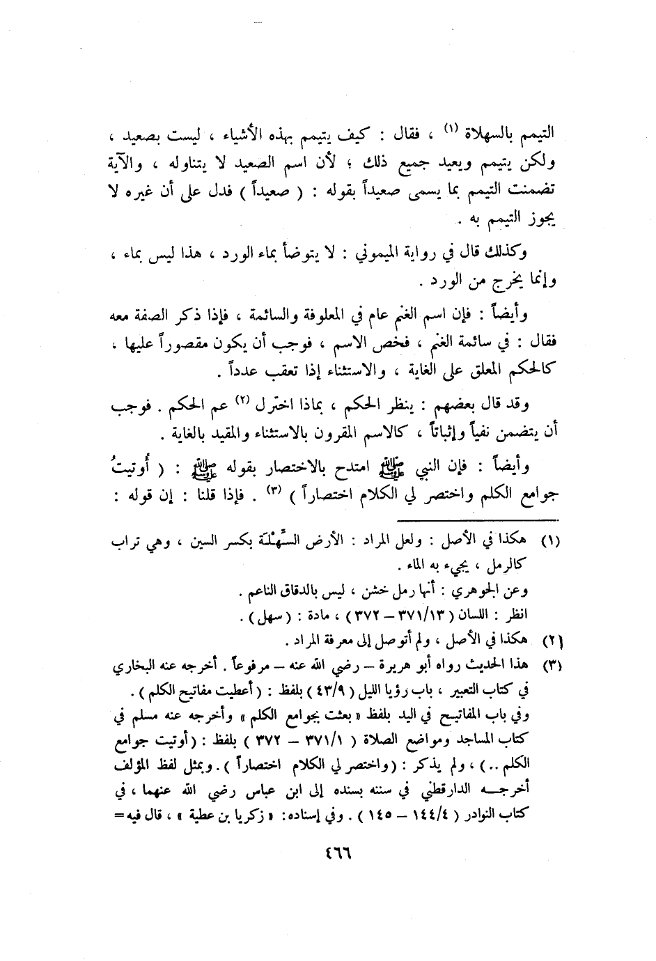 وأيضًا: فإن اسم الغنم عام في المعلوفة والسائمة؛ فإذا ذكر الصفة معه فقال: في سائمة الغنم، فخص الاسم، فوجب أن يكون مقصورًا عليها، كالحكم المعلق على الغاية، والاستثناء إذا تعقب عددًا.