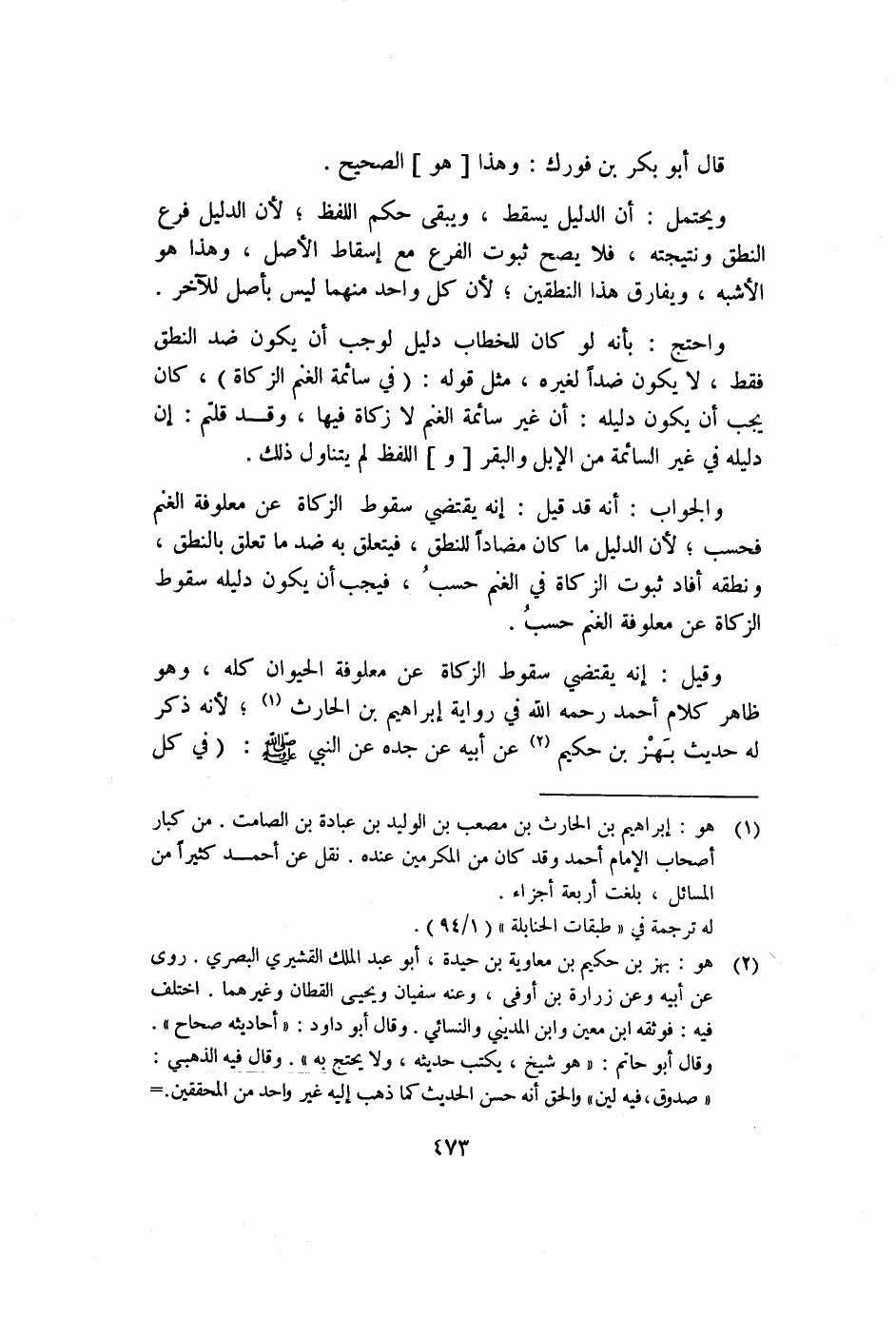 وقيل: إنه يقتضي سقوط الزكاة عن معلوفة الحيوان كله، وهو ظاهر كلام أحمد رحمه الله في رواية إبراهيم بن الحارث١؛ لأنه ذكر له حديث بهز بن حكيم٢، عن أبيه، عن جده، عن النبي صلى الله عليه وسلم: "في كل