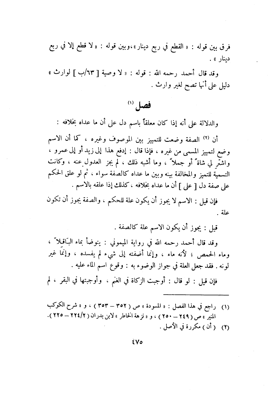 ١ راجع في هذا الفصل: "المسودة" ص"٣٥٢-٣٥٣"، و"شرح الكوكب المنير" ص"٢٤٩-٢٥٠"، و"نزهة الخاطر" لابن بدران "٢/٢٢٤-٢٢٥".