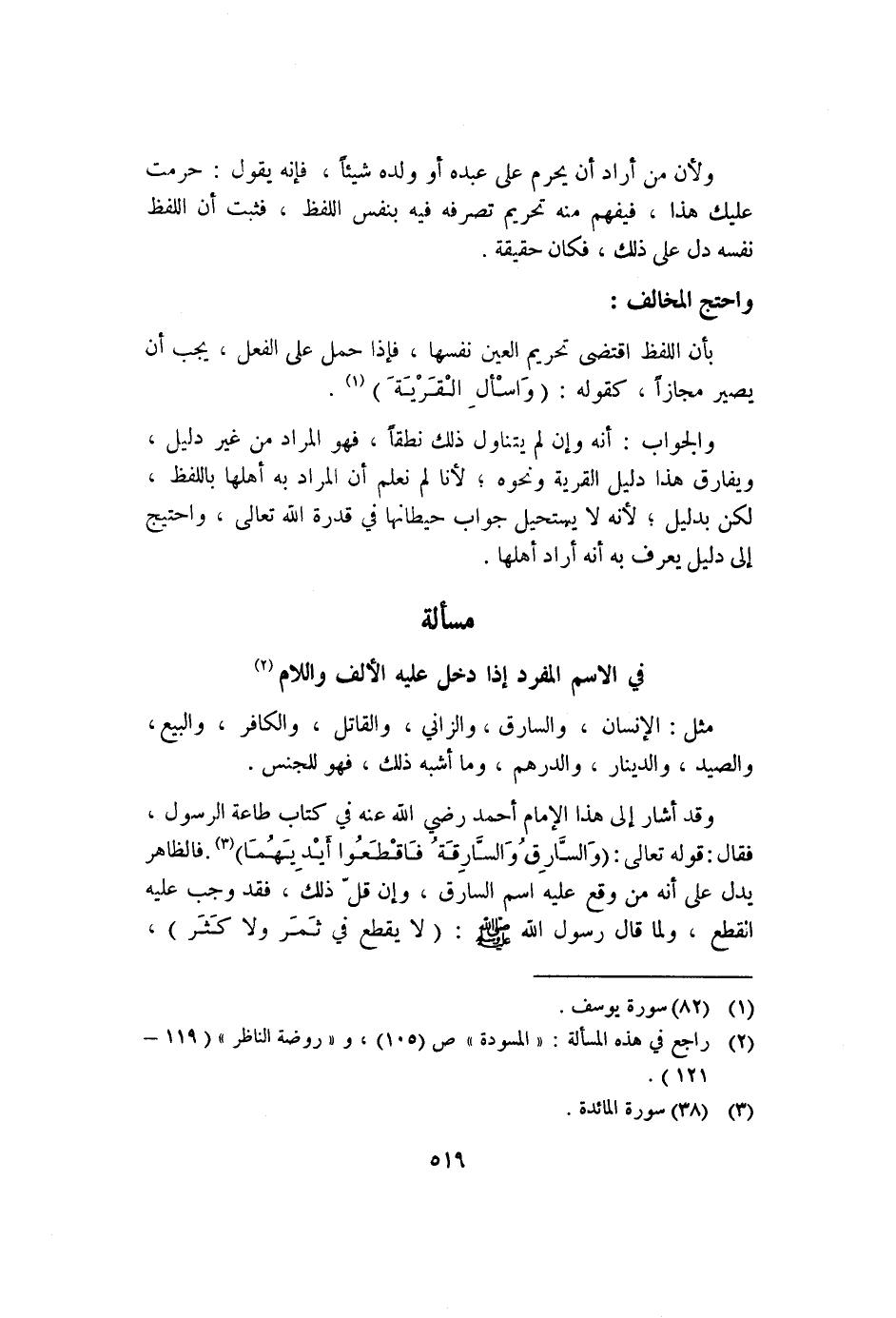 ١ راجع في هذه المسألة: "المسودة" ص"١٠٥"، و"روضة الناظر": "١١٩-١٢١".