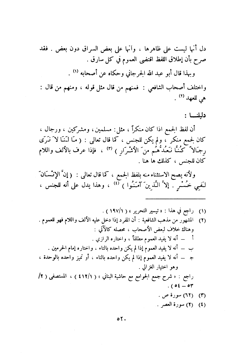 أن لفظ الجمع إذا كان منكرًا، مثل: مسلمين، ومشركين، ورجال؛ كان لجمع منكر، ولم يكن للجنس، كما قال تعالى: {مَا لَنَا لا نَرَى رِجَالًا كُنَّا نَعُدُّهُمْ مِنَ الأَشْرَارِ} ١؛ فإذا عرف بالألف واللام كان للجنس، كذلك ههنا.